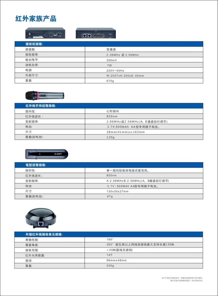 • 内置红外发射器,通过红外光将音频信号无线传输至接收端;